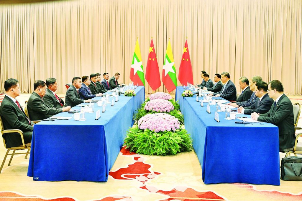ထို့နောက် နိုင်ငံတော်စီမံအုပ်ချုပ်ရေးကောင်စီဥက္ကဋ္ဌ နိုင်ငံတော်ဝန်ကြီးချုပ်နှင့် တရုတ်ပြည်သူ့သမ္မတနိုင်ငံသမ္မတတို့သည် နှစ်နိုင်ငံဆက်ဆံမှု တိုးမြှင့်ဆောင်ရွက်ရေး၊ ကဏ္ဍပေါင်းစုံတွင် ပူးပေါင်းဆောင်ရွက်မှုများ မြှင့်တင်နိုင်ရေး၊ ဆွေမျိုးပေါက်ဖော် ချစ်ကြည်ရင်းနှီးမှုနှင့် အေးအတူ ပူအမျှ အသိုက်အဝန်း တည်ဆောက်ရေး၊ ဒေသတွင်းတည်ငြိမ်အေးချမ်းရေးဆိုင်ရာကိစ္စရပ်များတွင် ပူးပေါင်းဆောင်ရွက်ရေးတို့နှင့်ပတ်သက်၍ ခင်မင်ရင်းနှီးစွာ အမြင်ချင်းဖလှယ်ဆွေးနွေးခဲ့ကြသည်။