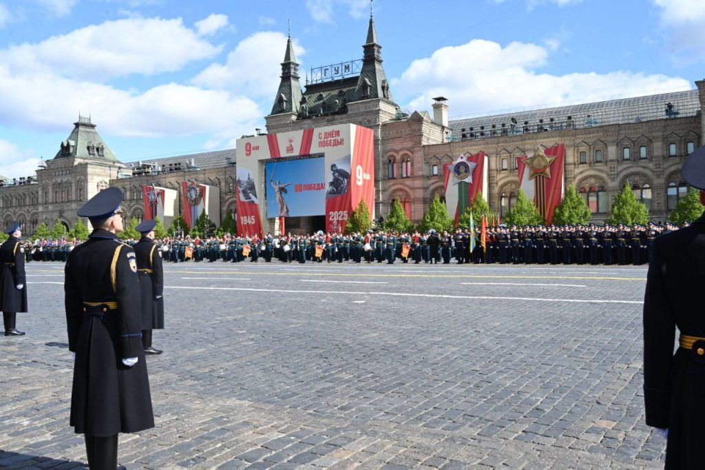 ယင်းနောက် ရုရှားတပ်မတော်ကြည်းတပ်ဦးစီးချုပ် ဦးဆောင်သည့် နိုင်ငံတကာမှ စစ်ရေးပြတပ်ဖွဲ့ဝင်များပါဝင်သည့် စစ်ရေးပြတပ်ဖွဲ့များမှ စစ်သေနာပတိချုပ်အား လမ်းလျှောက်ချီတက်အလေးပြုကြသည်။ ထို့နောက် တင့်၊ သံချပ်ကာ၊ အမြောက်၊ လေကြောင်းရန်၊ မဟာဗျူဟာမြောက် တိုက်ချင်းပစ်ဒုံးတပ်ဖွဲ့စသည့် ယန္တရားတပ်ဖွဲ့များမှ ချီတက်အလေးပြုခြင်းနှင့် လေတပ်မှ လေယာဉ်များဖြင့် ပျံသန်းအလေးပြုကြသည်။ ယင်းနောက် စစ်တီးဝိုင်းတပ်ဖွဲ့မှ ရုရှားအောင်ပွဲနေ့အခမ်းအနားအထိမ်းအမှတ် ဂုဏ်ပြုတေးသီချင်းအား သီဆို၍ ပြန်လည်ထွက်ခွာသည်။