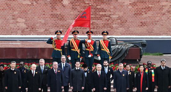 ထို့နောက် နိုင်ငံတော်စီမံအုပ်ချုပ်ရေးကောင်စီဥက္ကဋ္ဌ နိုင်ငံတော်ဝန်ကြီးချုပ်နှင့် နိုင်ငံတကာမှအကြီးအကဲများ၊ တာဝန်ရှိသူများ ရုရှားဖက်ဒရေးရှင်းနိုင်ငံသမ္မတ ဗလာဒီမာပူတင်နှင့်အတူ ကရင်မလင်နန်းမြို့ရိုးအနီးရှိ အညတရစစ်သည်ဂူဗိမာန်သို့ ရောက်ရှိကြပြီး ပန်းစည်းချအလေးပြုကြသည်။ ထို့နောက် ရုရှားဖက်ဒရေးရှင်းနိုင်ငံသမ္မတ၊ နိုင်ငံတော်စီမံအုပ်ချုပ်ရေးကောင်စီဥက္ကဋ္ဌ နိုင်ငံတော်ဝန်ကြီးချုပ်နှင့် နိုင်ငံတကာမှ အကြီးအကဲများ၊ တာဝန်ရှိသူများသည် အမှတ်တရ စုပေါင်းမှတ်တမ်းတင် ဓာတ်ပုံရိုက်ကြသည်။